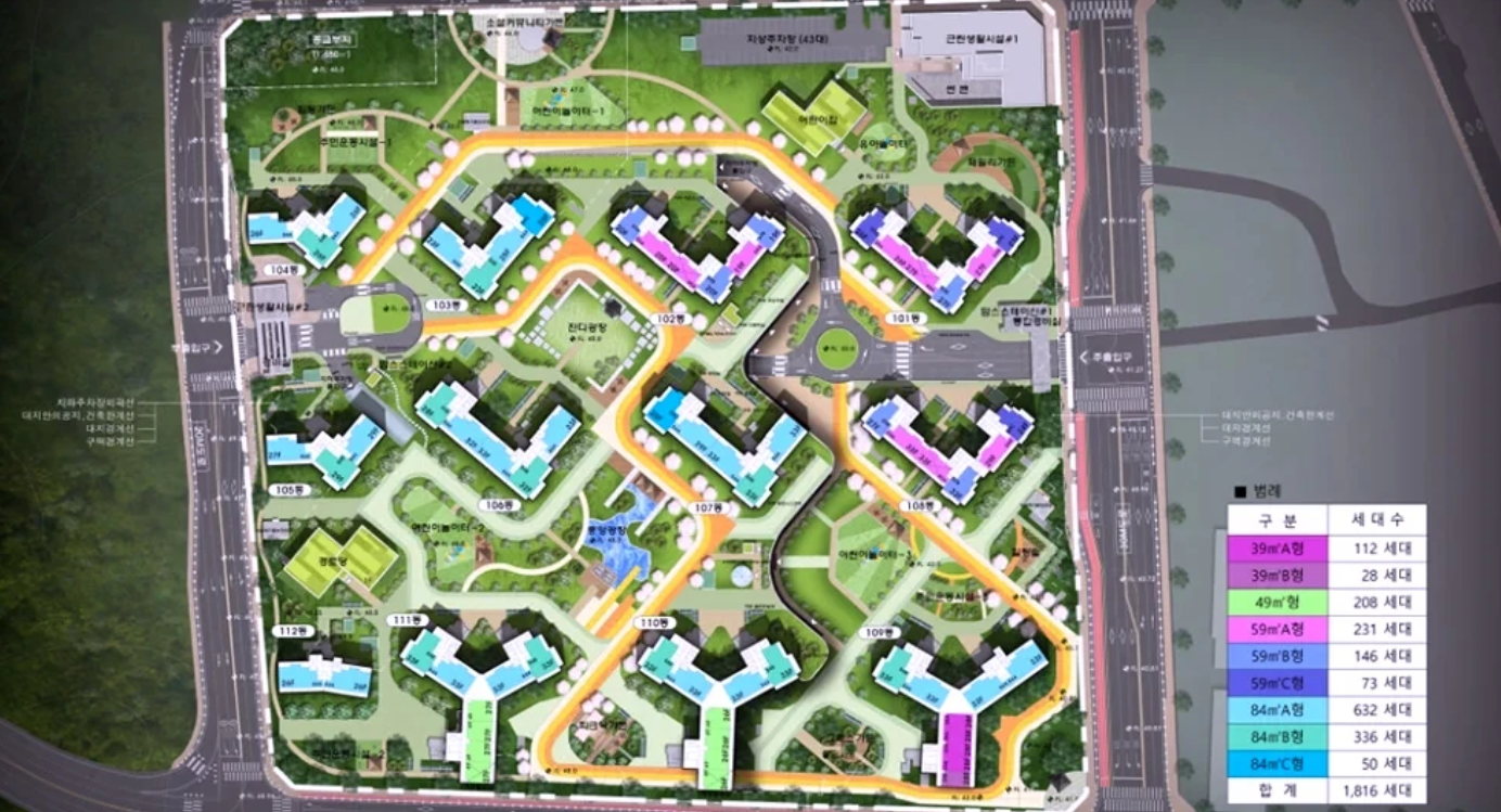 - 총 세대수: 1,816세대 중 일반분양 674세대
